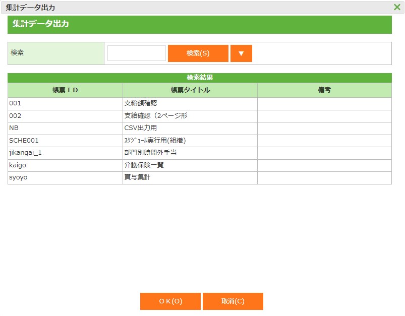 3.4.11.8 集計データ出力画面−2 帳票ID表示画面/