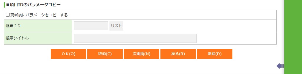 チェックした場合、「OK」ボタンを押下し更新した後にパラメータのコピーを行います。 | チェックボックス入力 |
