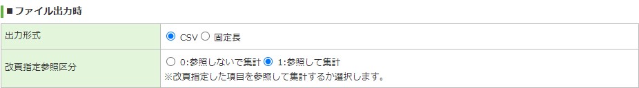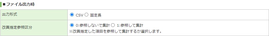 ・ ファイル出力時の改頁指定集計方法として以下の2種類があります。