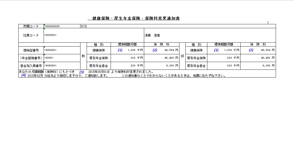 月額報酬に基づき保険料に変更が発生する場合、保険料通知を出力します。