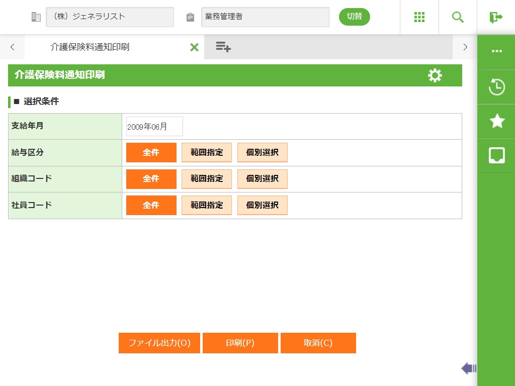 介護保険の徴収が開始になった社員に対して開始時に出力します。介護保険情報に改定があった社員(徴収区分の変更があった場合など)を、給与計算後に印字します。