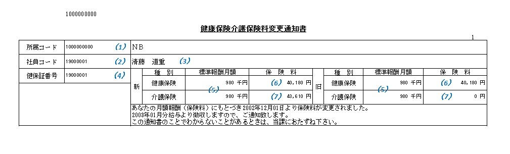 料率・標準報酬月額が変更された場合出力します。 |