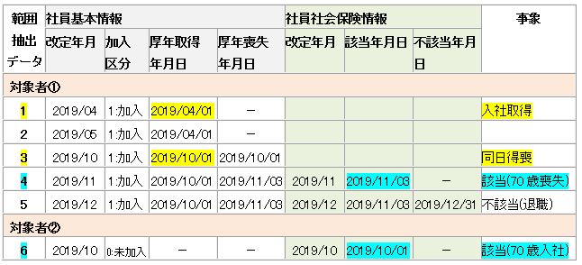 社員コード(xxxxxxxx)の厚年喪失年月日が生年月日から算出した70歳到達日と異なります。 |