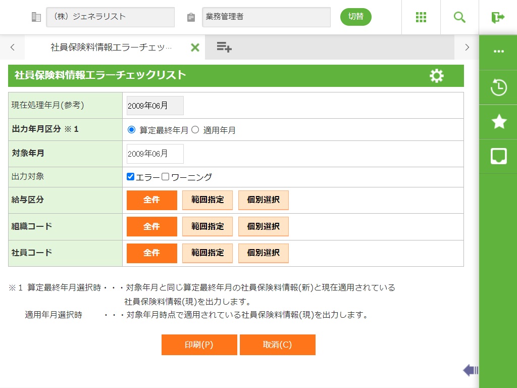 3.5.11 社員保険料情報エラーチェックリスト画面