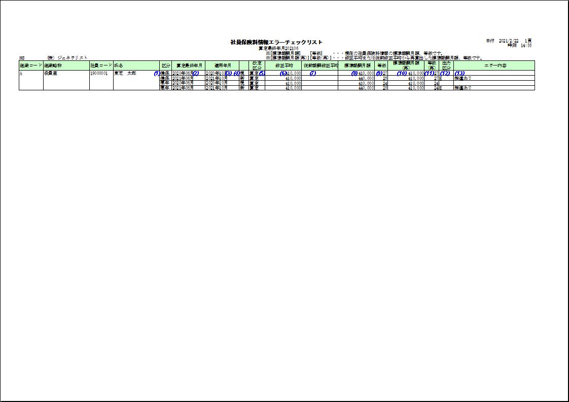 社員保険料情報エラーチェックリスト 【出力内容】 【サンプル帳票】