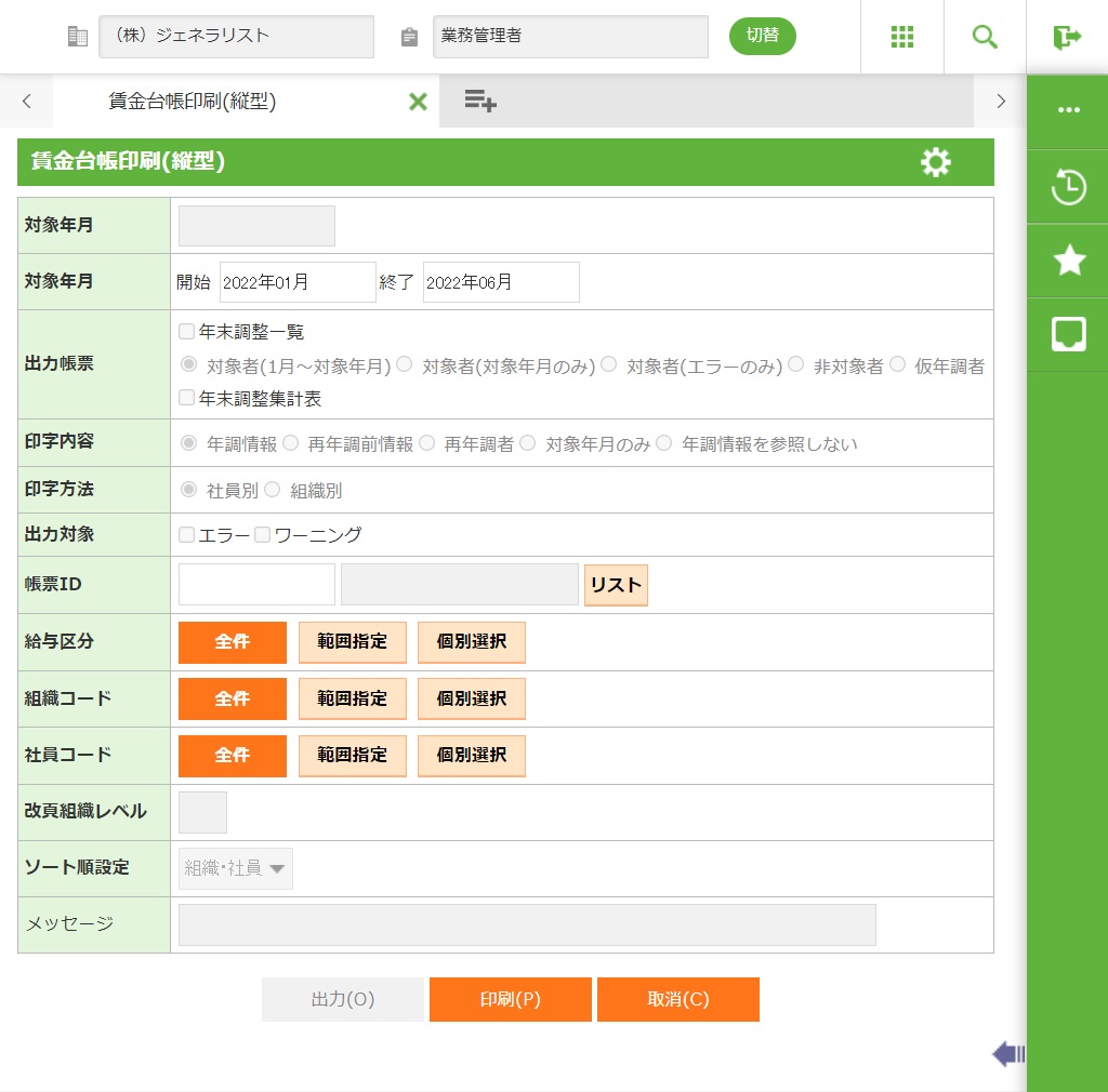 対象となる社員は、指定した対象年月で給与計算または賞与計算が行われている社員です。