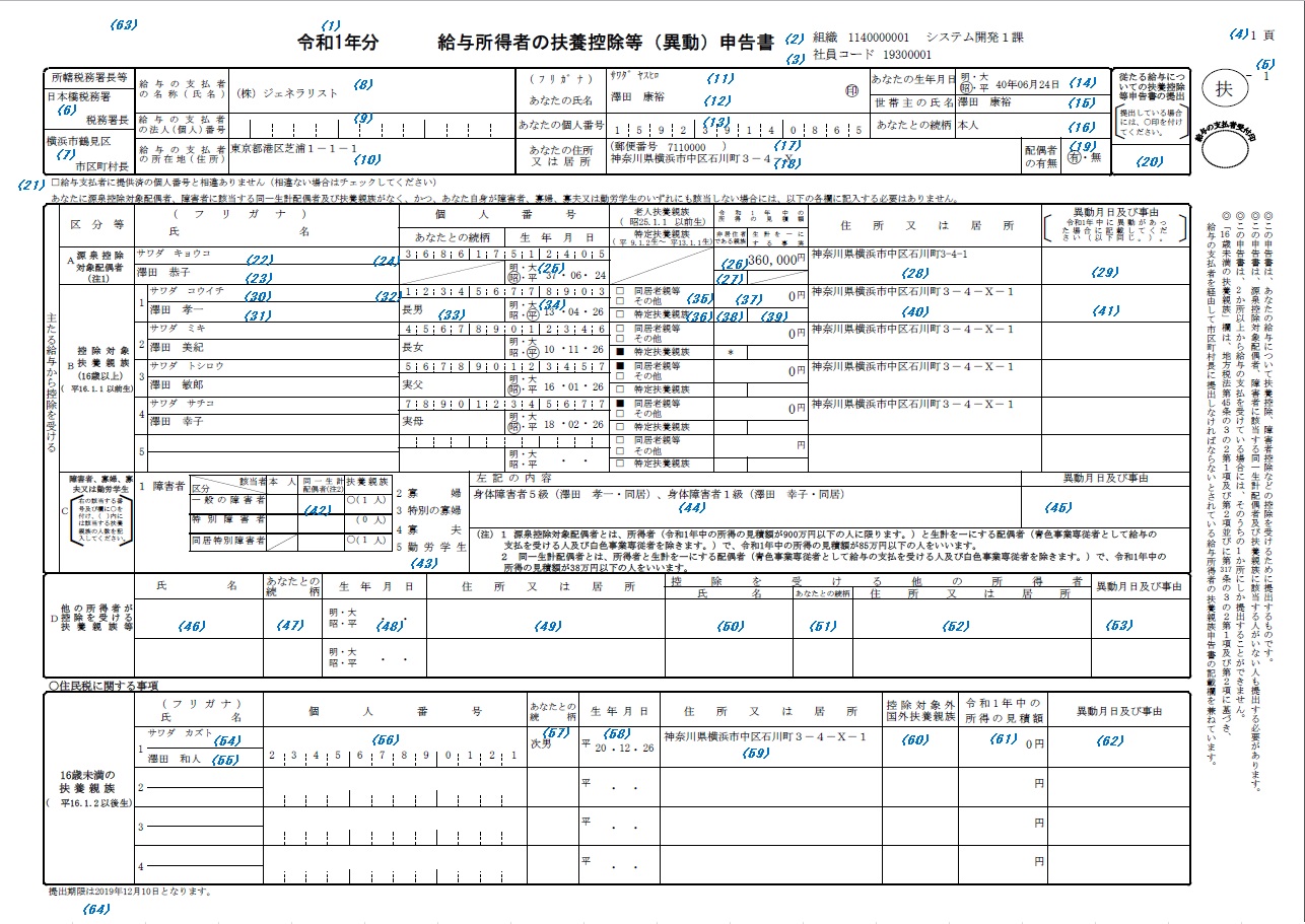 給与所得者の扶養控除等(異動)申告書 【出力内容】 【サンプル帳票】