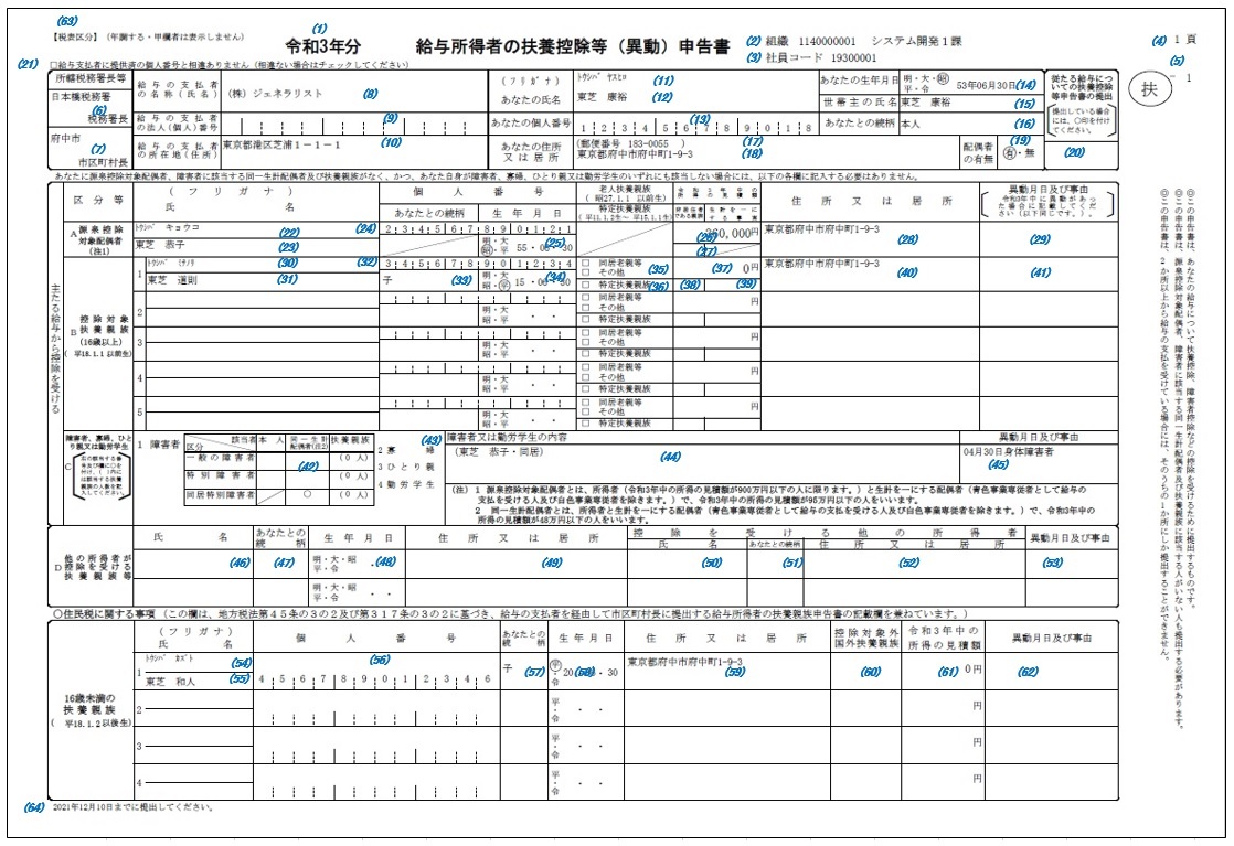 給与所得者の扶養控除等(異動)申告書 【出力内容】 【サンプル帳票】