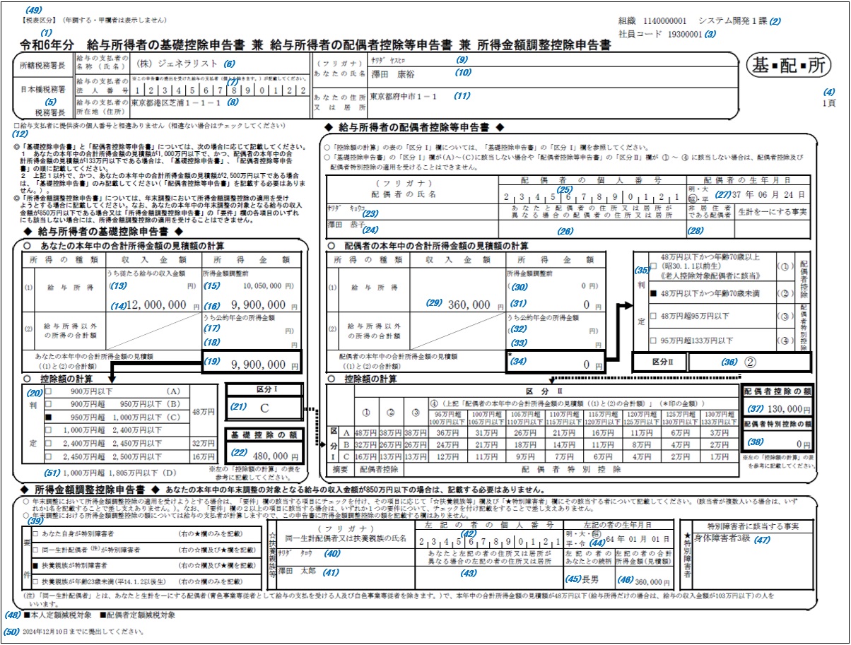 【基礎控除兼配偶者控除兼所得金額調整控除申告書】