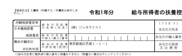 ※1 国税庁公開の帳票では「扶養控除等申告書のとおり」のチェック欄がありますが、Generalistではこのチェック欄は印字しません。 該当する場合は、『扶養控除等申告書のとおり』と手書きしてください。