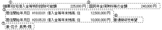 2行目以降に住宅借入金等特別控除関連項目を印字します。住宅借入金等特別控除関連項目は途中で改行する可能性があります。