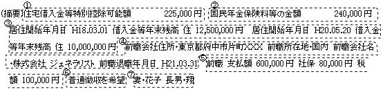・1行目には、住宅借入金等特別控除可能額、国民年金保険料等の金額を印字します。これらの金額がない場合には、0円と印字されます。