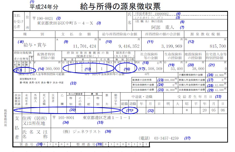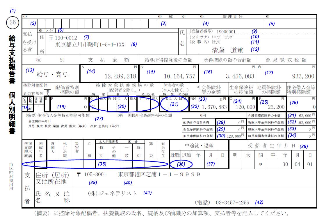 源泉徴収票-給与支払報告書個人別明細書 【出力内容】 【サンプル帳票】