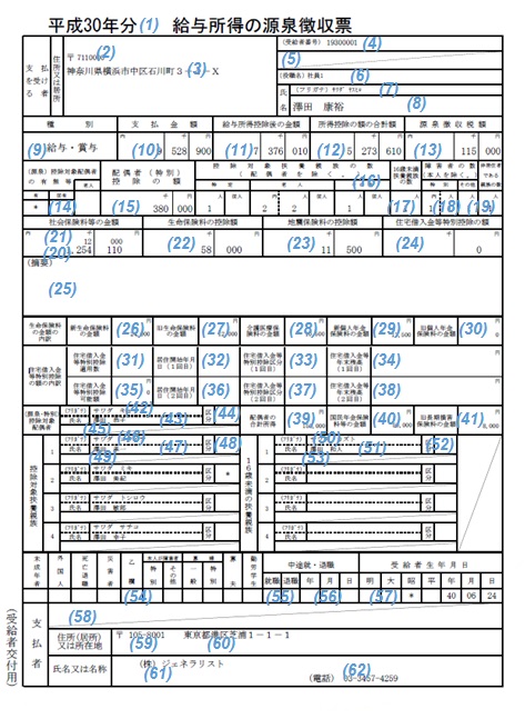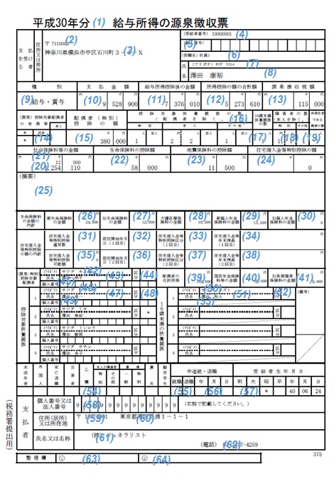 源泉徴収票-給与所得の源泉徴収票(税務署・個人用)【出力内容】 【サンプル帳票】