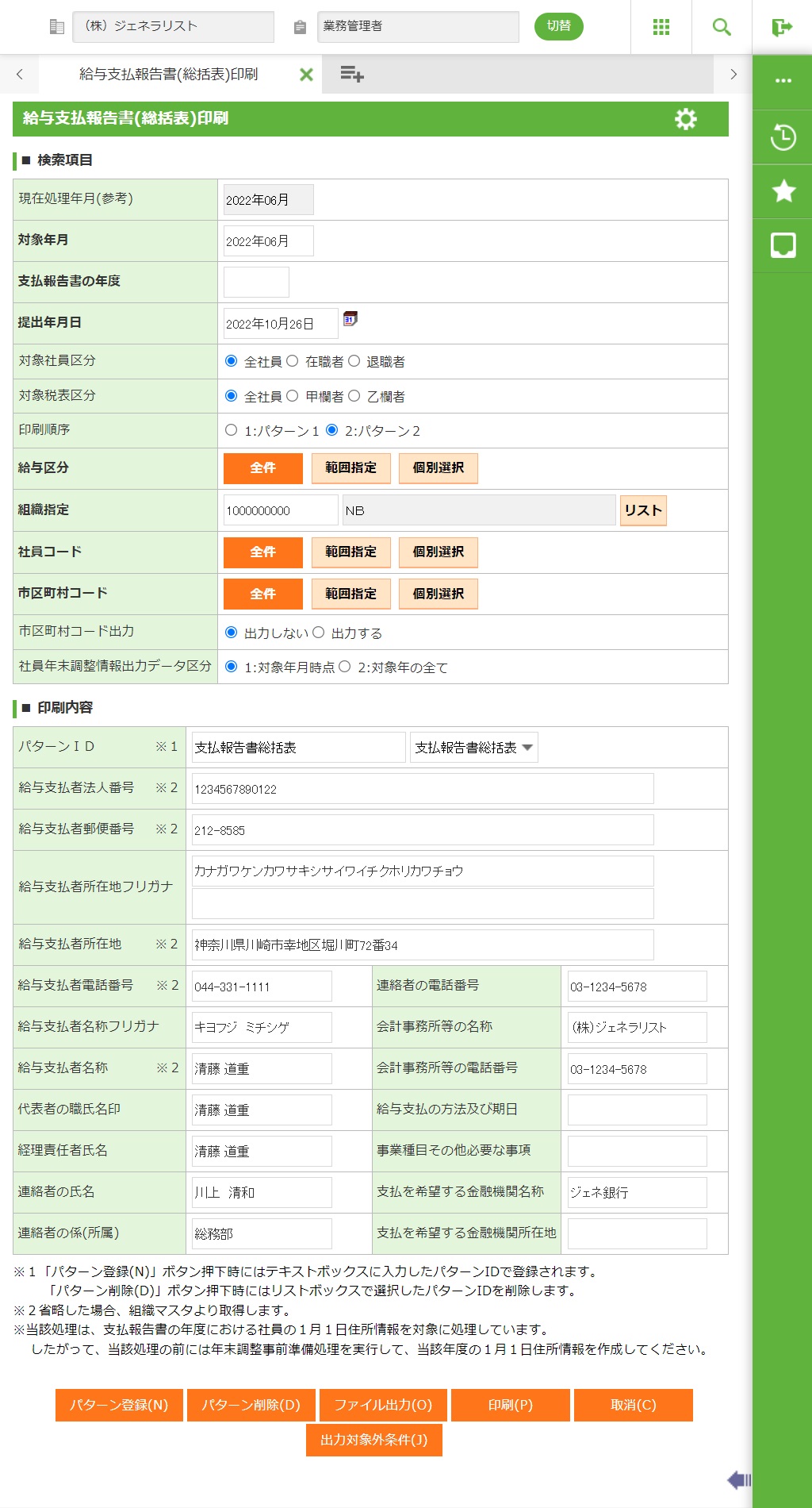 給与支払報告書(総括表)印刷>会計事務所等の名称 |