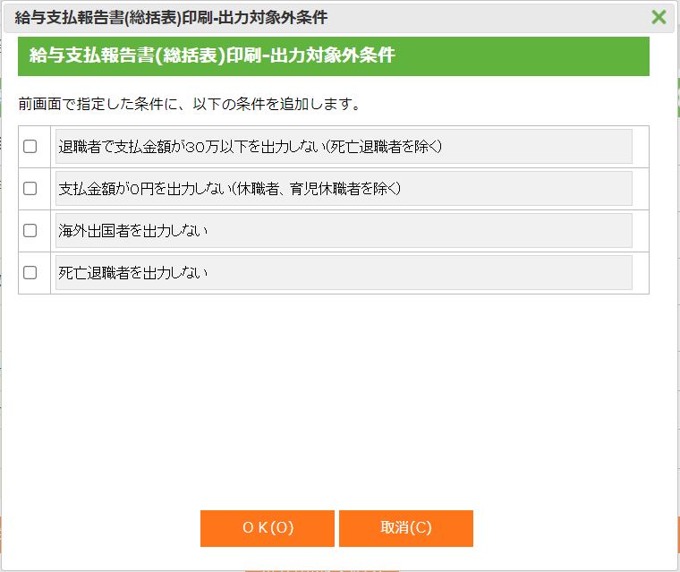 | 出力対象外条件(J) | 出力対象外条件画面を表示します。 |