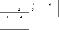 1枚目の左から2枚目の左、…末尾の左まで出力後、1枚目右に戻り2枚目右…末尾の右の順に出力するパターンです。 全体を積み重ねて2分割にし、その2つの束を重ねると順番に並ぶパターンです。 ![]() |