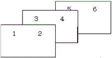 1枚目の左、右順に出力後、2枚目も同様な順(左、右順)で出力し、それを末尾まで出力するパターンです。 1枚ごとに2分割し、それを1枚ごとに重ねると順番に並ぶパターンです。出力枚数が少ない場合にお薦めします。 ![]() |