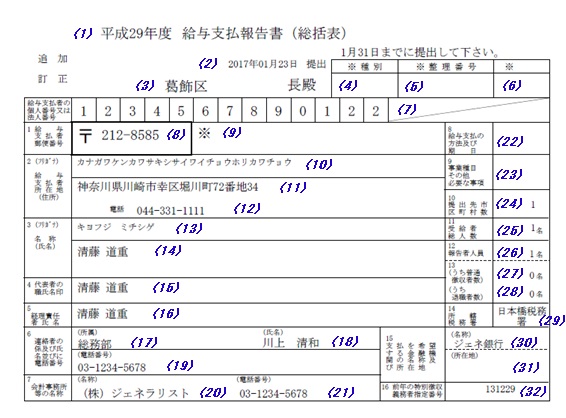 給与支払報告書(総括表)印刷>連絡者の電話番号 |