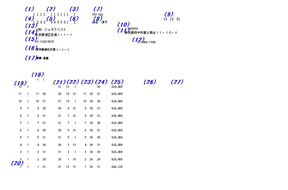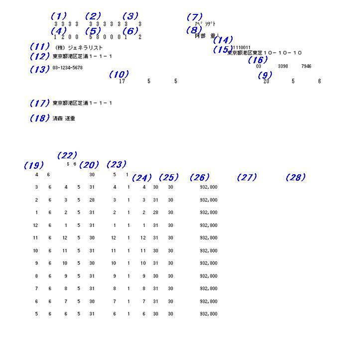 雇用保険事業所マスタ(テーブル)>代表電話番号 |