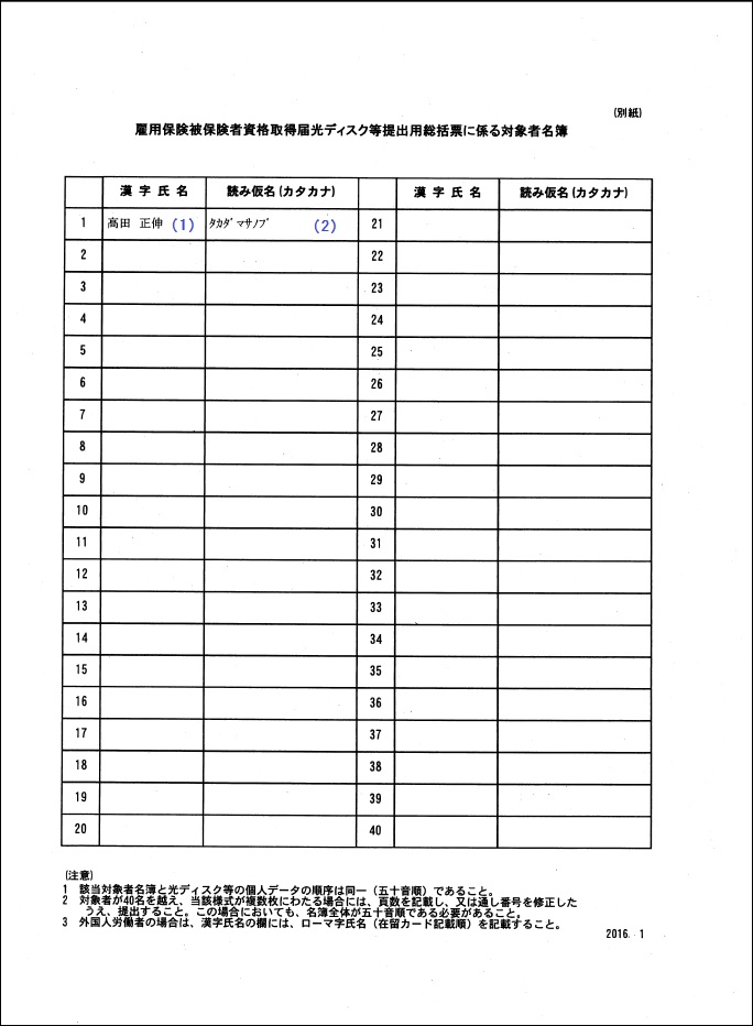 雇用保険被保険者資格取得届光ディスク等提出用総括票に係る対象者名簿(A4縦)