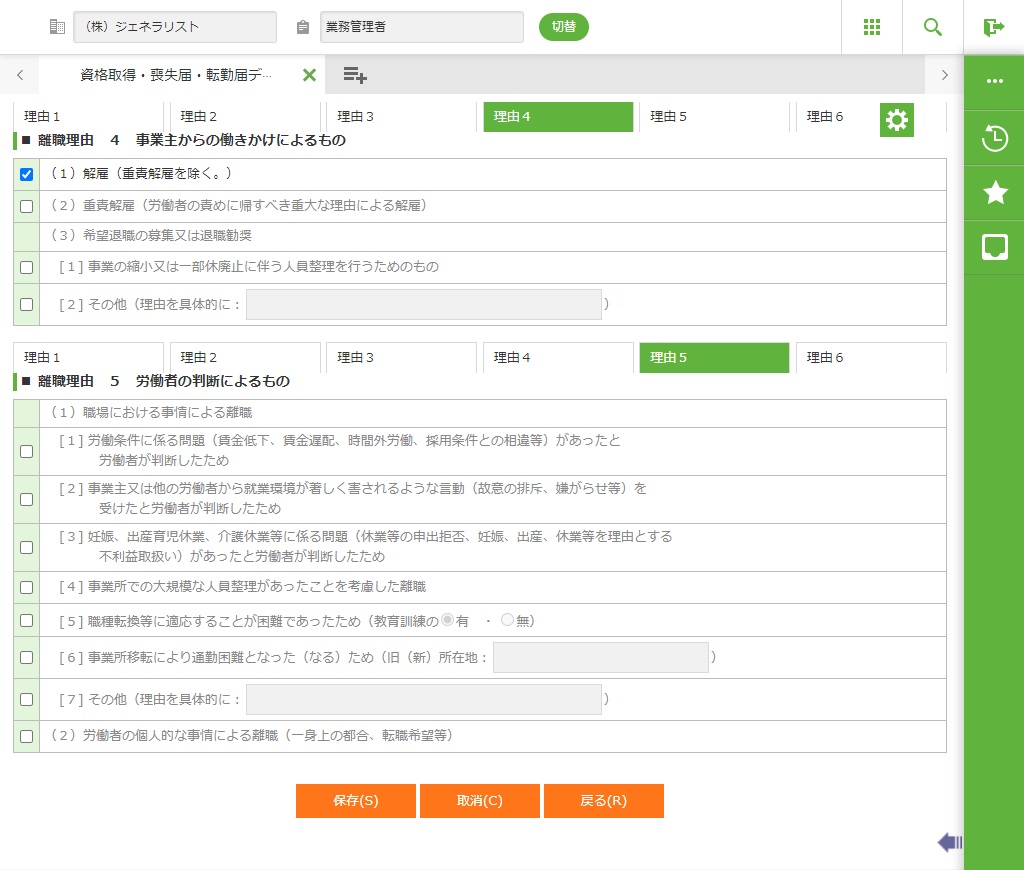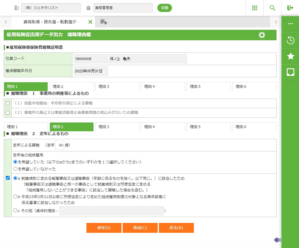 ただし、死亡退職や在籍出向など喪失原因が「1:離職以外の理由」の離職証明書は作成しません。