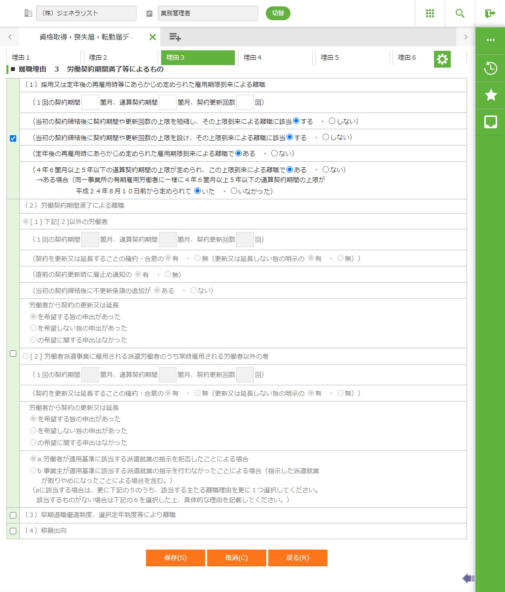 直前の契約更新時に雇止め通知の有無を選択します。 |