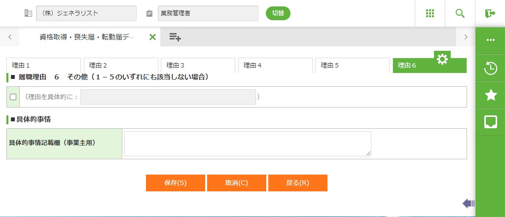 第2画面で選択した社員の届出データ(履歴情報)を表示・入力します。 |