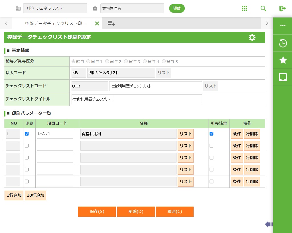 個別メンテナンスを行う控除チェックリスト印刷パラメータの給与又は賞与区分を選択します。 |