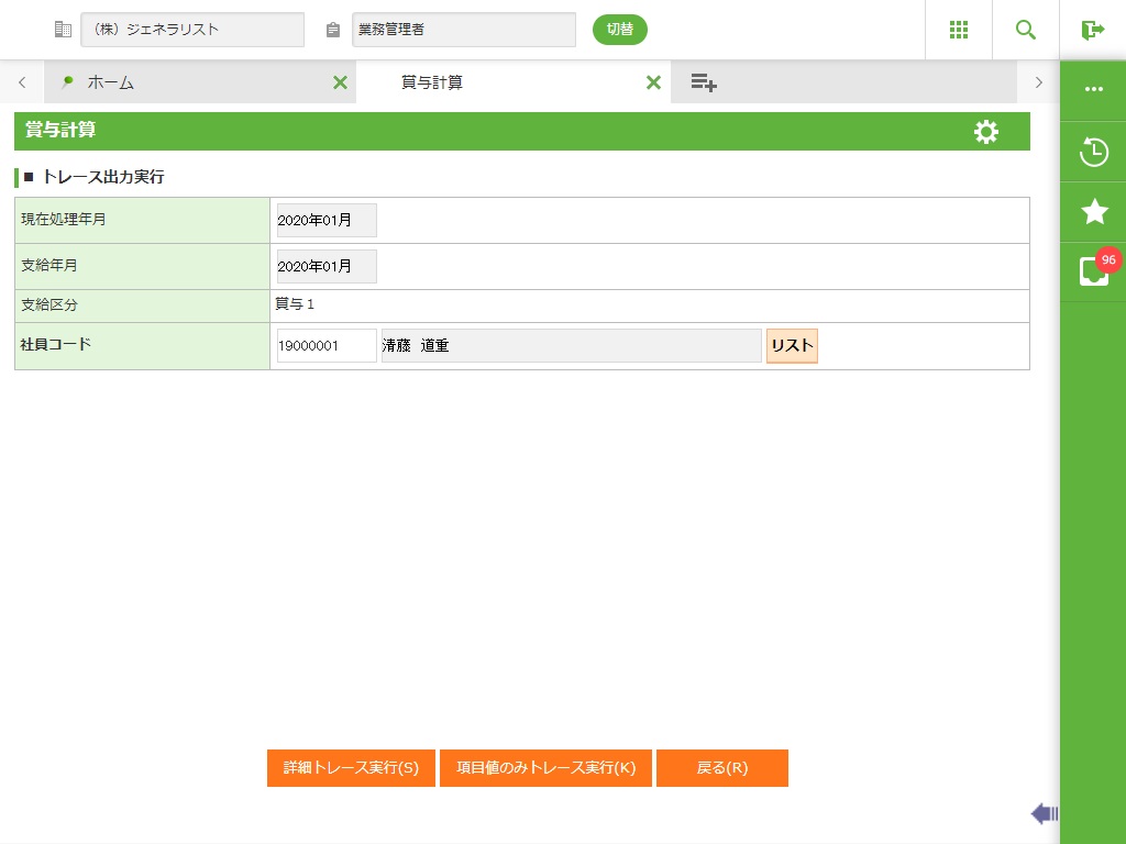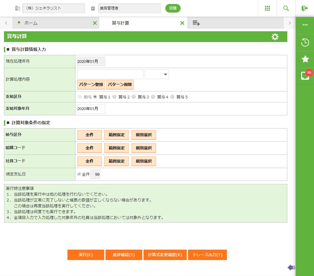 支給区分・支給年月を指定して、対象月の賞与計算を行います。