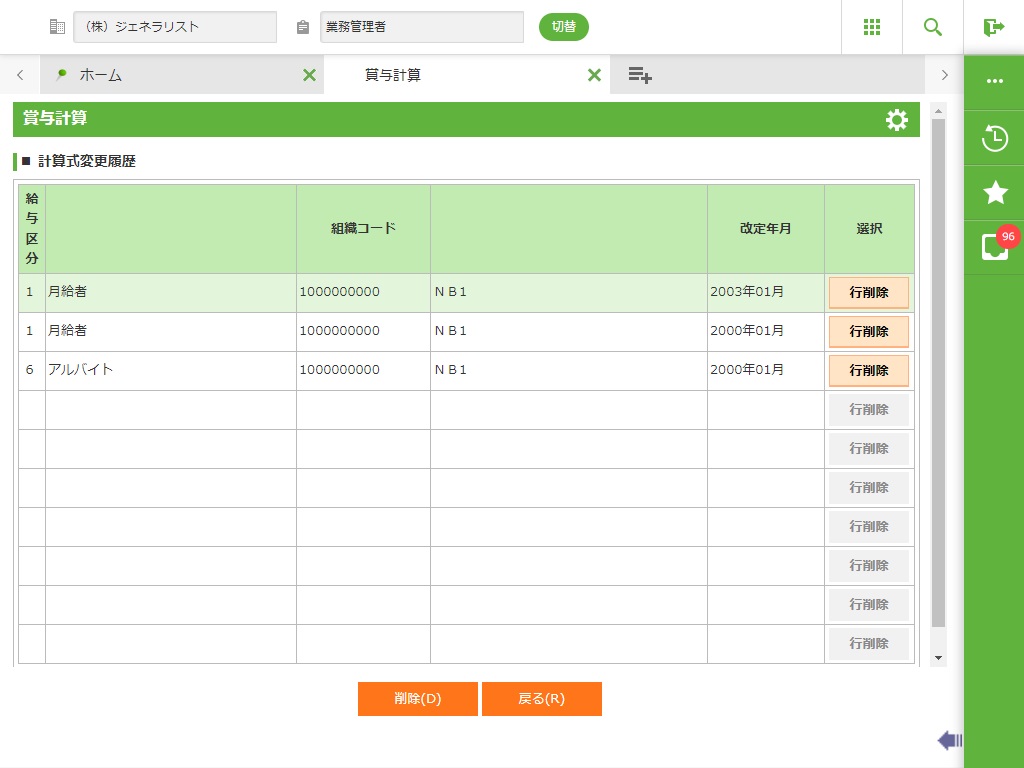 変動項目の削除処理を実行しない場合は、計算式変更履歴画面にて改定年月を削除後、賞与計算を実行してください。