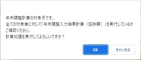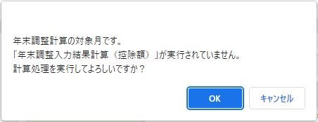 ・年末調整計算の対象月の場合、年末調整を実施済みか確認する警告メッセージが表示されます。