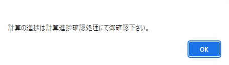 ・ 当該処理では計算指示のみ行います。実際の計算処理はデータベースサーバにて行います。計算処理実行後他の処理を行うことが可能です。計算処理の進捗状況については計算進捗確認にて確認します。