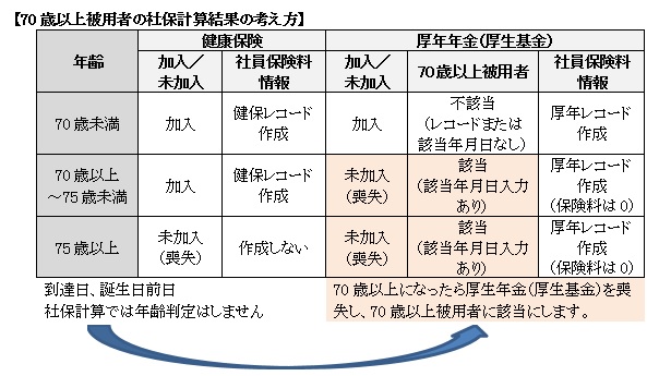 ・ 算定最終年月時点で70歳以上被用者に該当する場合は、加入判定は行わず厚生年金の算定対象者とします。