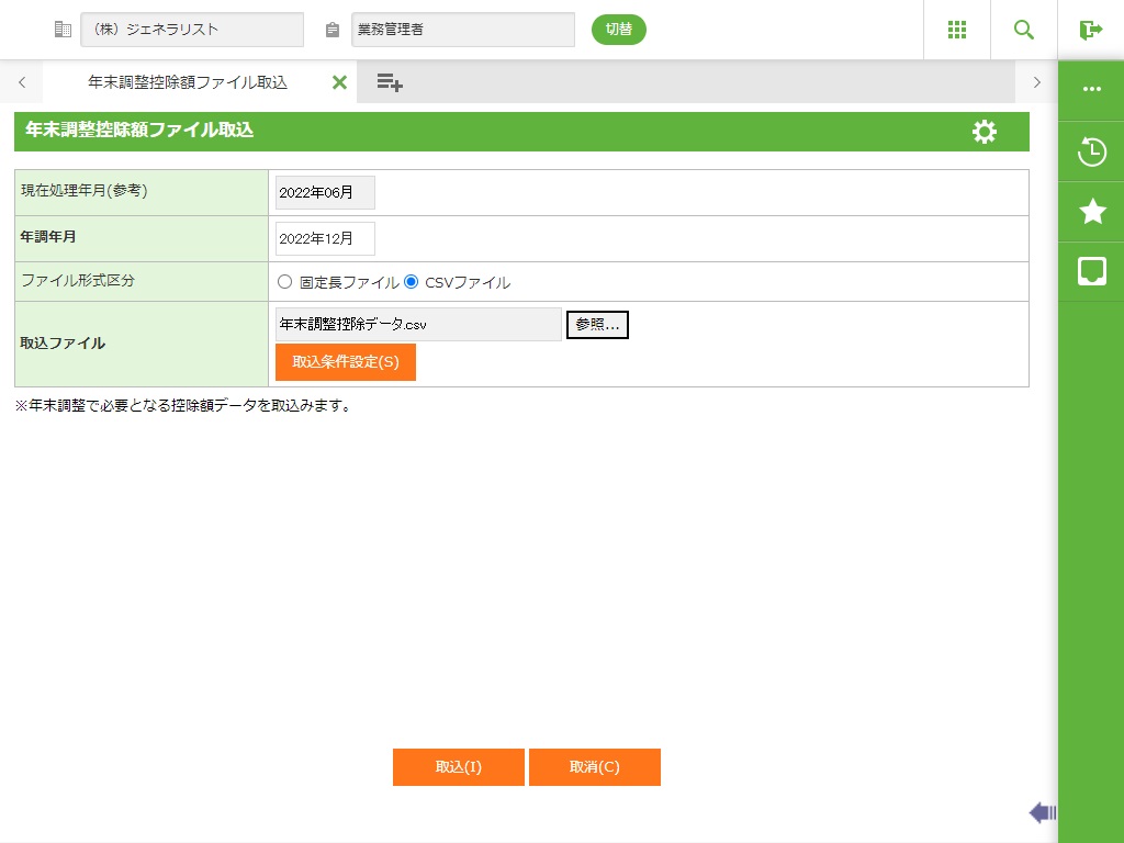 入力した対象年月の年末調整控除額ファイル取込を行います。 |