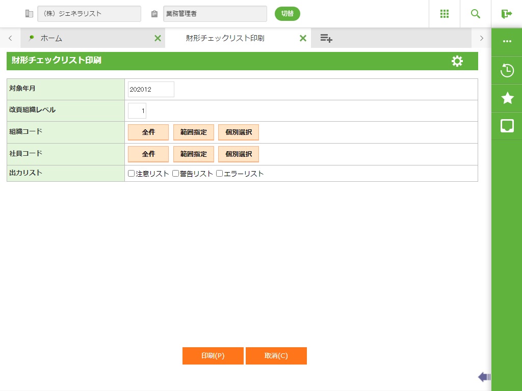 積立額・残高を確認するために、財形チェックリストを出力します。