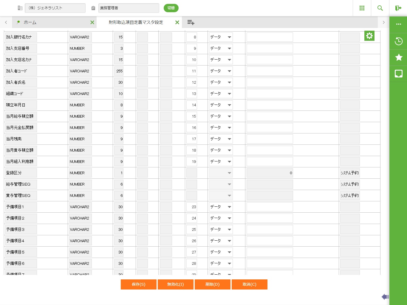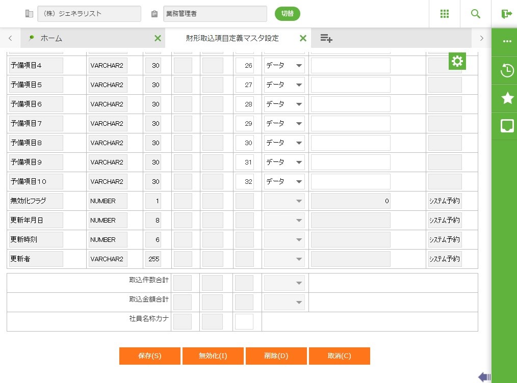 ・ 取込先テーブルの項目が、システム予約項目の場合、対応する項目への入力はできません。