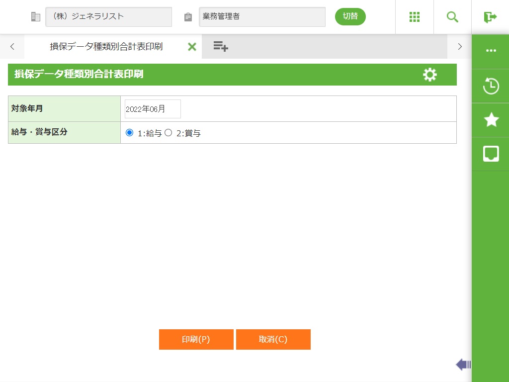対象年月に控除対象となる損害保険(生保損害情報)の保険料を種類別に合計した帳票を出力します。