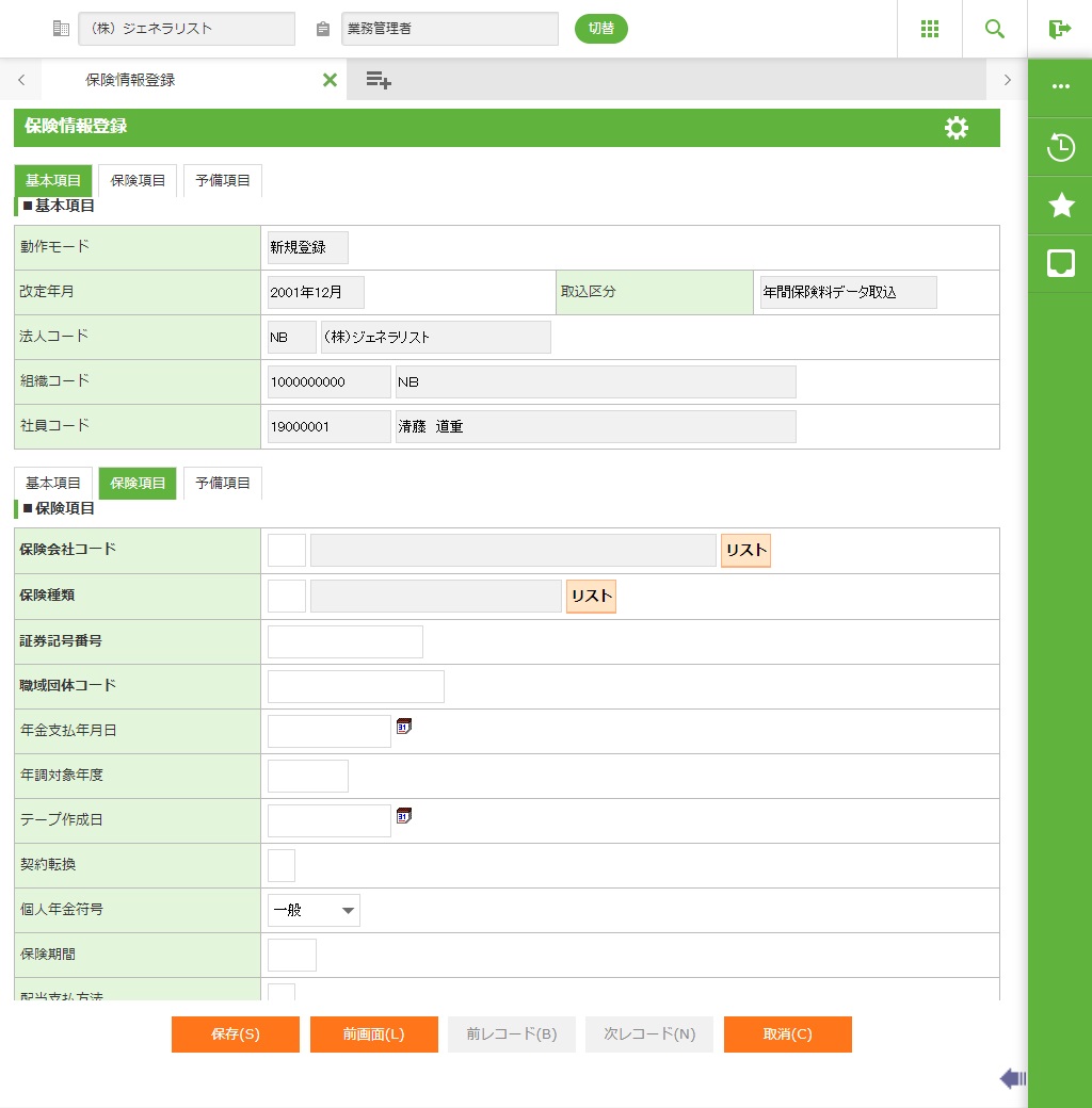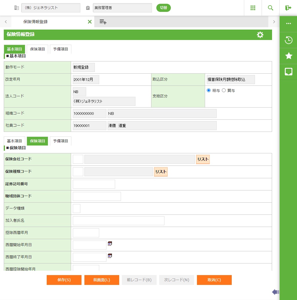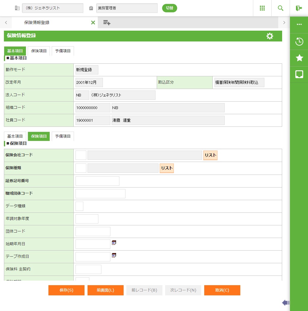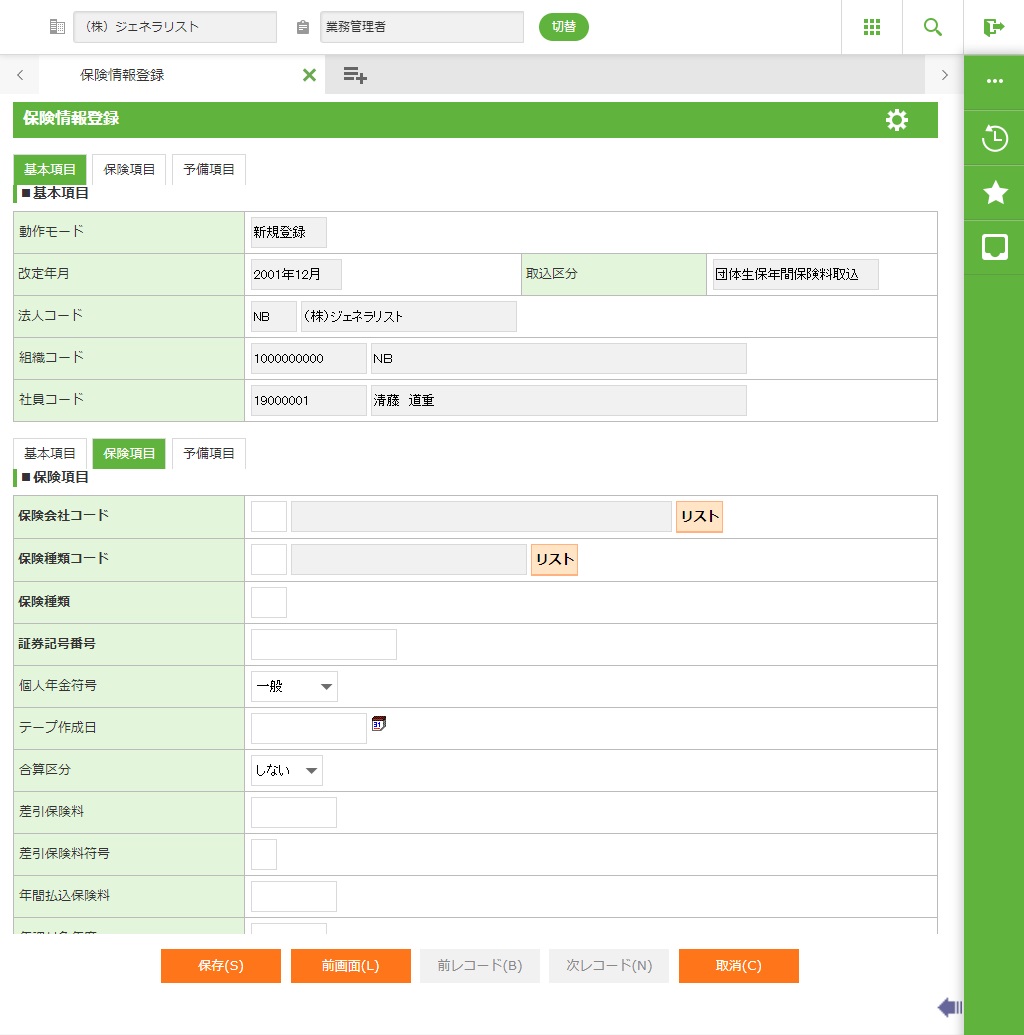 個人単位で生命保険情報(生保一般情報、生保配当一般情報、生保年調一般、生保団体情報、生保配当団体情報、生保年調団体、生保損害情報、生保損保年調情報)を登録、修正、削除します。