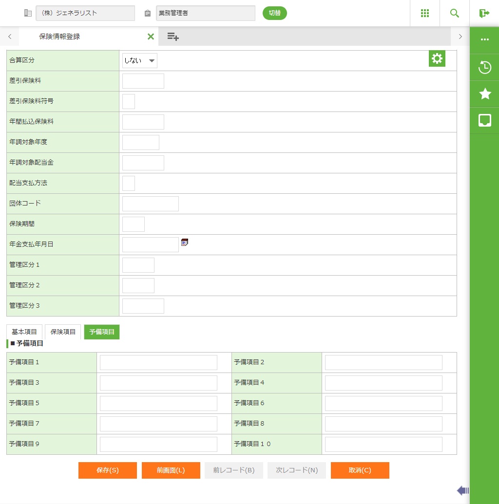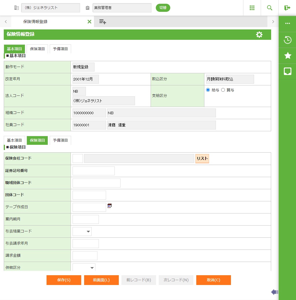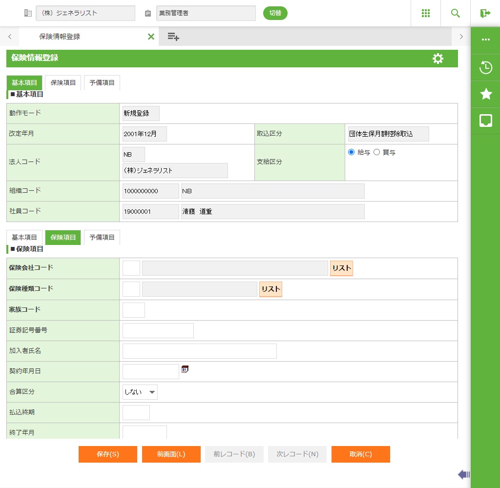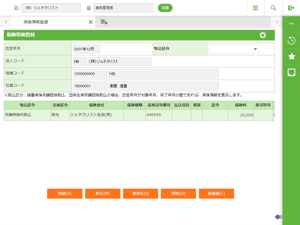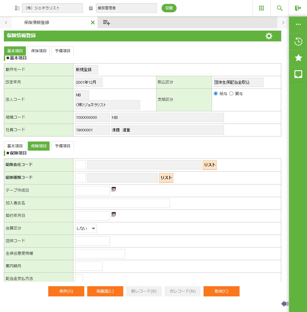 個人単位で生命保険情報(生保一般情報、生保配当一般情報、生保年調一般、生保団体情報、生保配当団体情報、生保年調団体、生保損害情報、生保損保年調情報)を登録、修正、削除します。