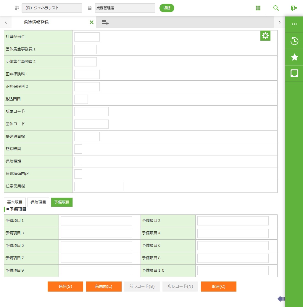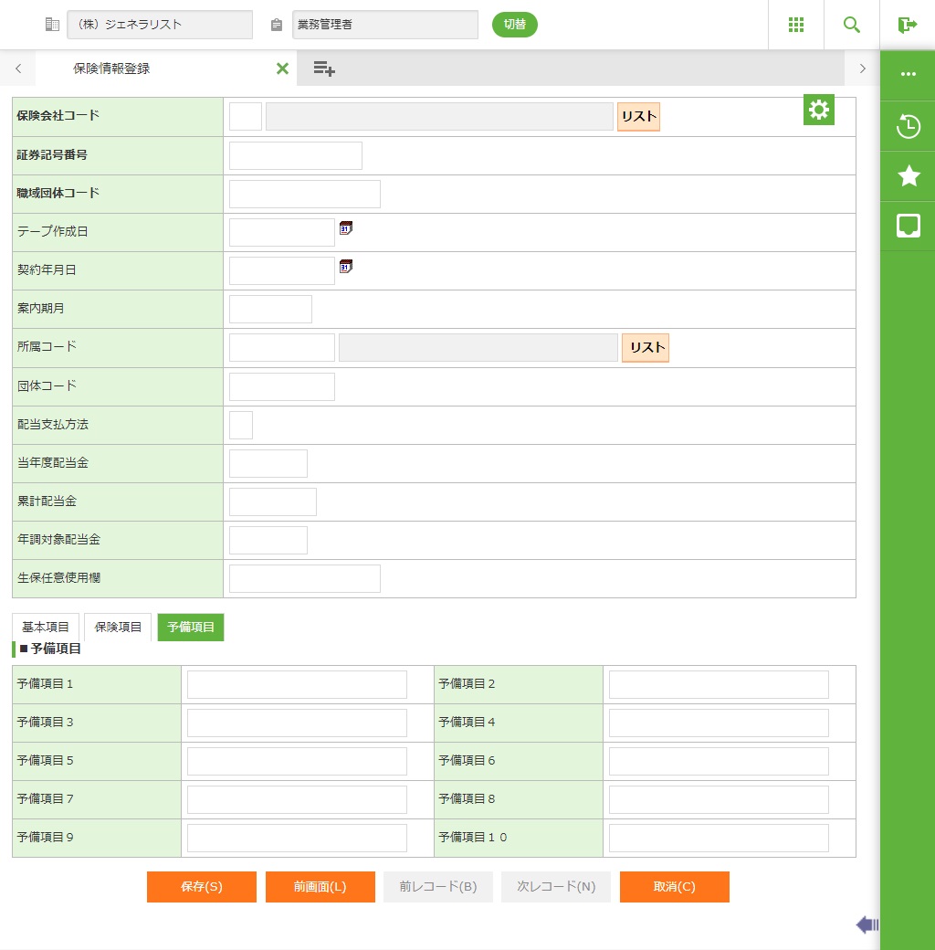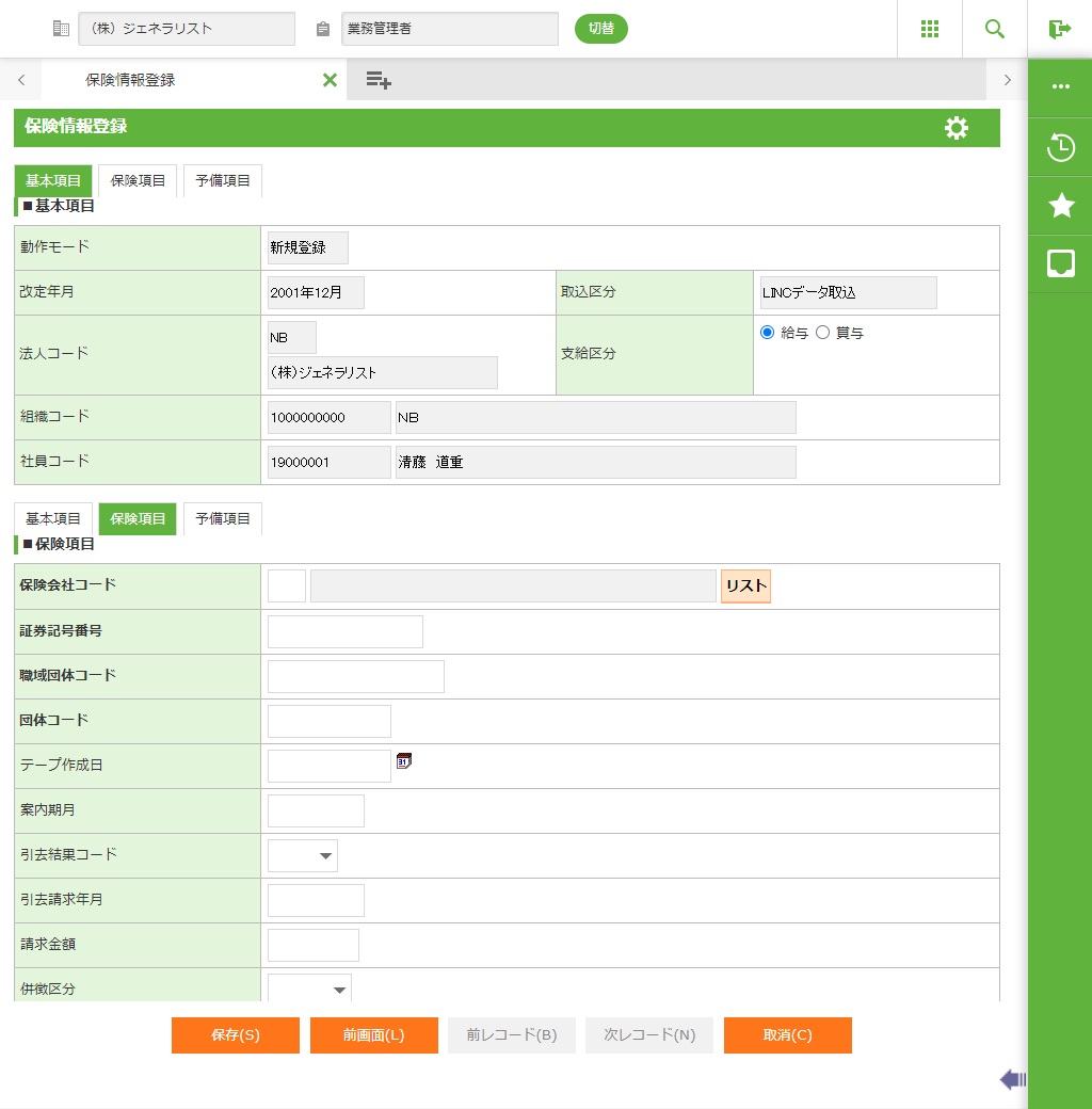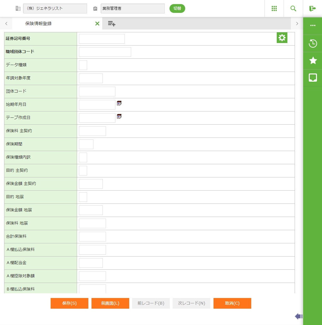 3.8.2.1 保険情報登録画面-1 各コード入力、対象年月入力画面/ 3.8.2.2 保険情報登録画面−2 情報一覧画面/ 3.8.2.3 保険情報登録画面−3 LINCデータ取込情報入力画面/ 3.8.2.4 保険情報登録画面−4 月額保険料取込情報入力画/ 3.8.2.5 保険情報登録画面−5 配当金データ取込情報入力画面/ 3.8.2.6 保険情報登録画面−6 年間保険料データ取込情報入力面面/> 3.8.2.7 保険情報登録画面−7 団体生保月額控除取込情報入力画面/ 3.8.2.8 保険情報登録画面−8 団体生保配当金取込情報入力画面/ 3.8.2.9 保険情報登録画面−9 団体生保年間保険料取込情報入力画面/ 3.8.2.10 保険情報登録画面−10 損害保険月額控除取込情報入力画面/ 3.8.2.11 保険情報登録画面−11 損害保険年間保険料取込情報入力画面