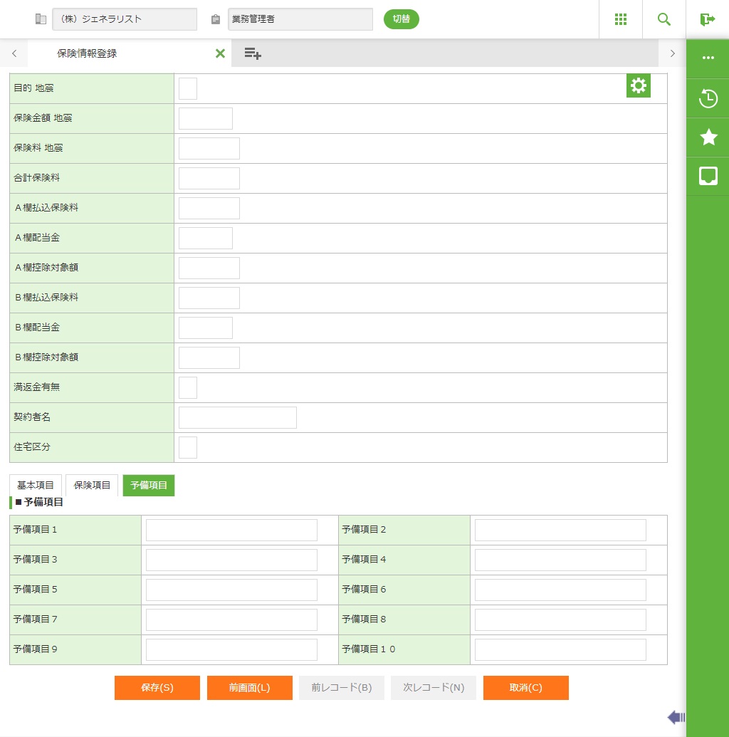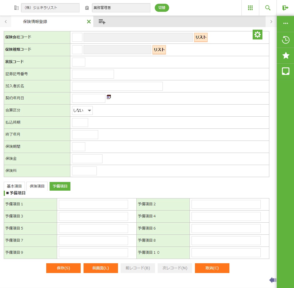 ・ 生命保険、損害保険、介護医療保険に関する情報を個人ごとに設定します。