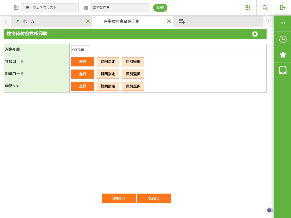 <全件>全件を指定します。 <範囲指定>範囲指定画面を呼び出します。 <個別選択>個別選択画面を呼び出します。 |