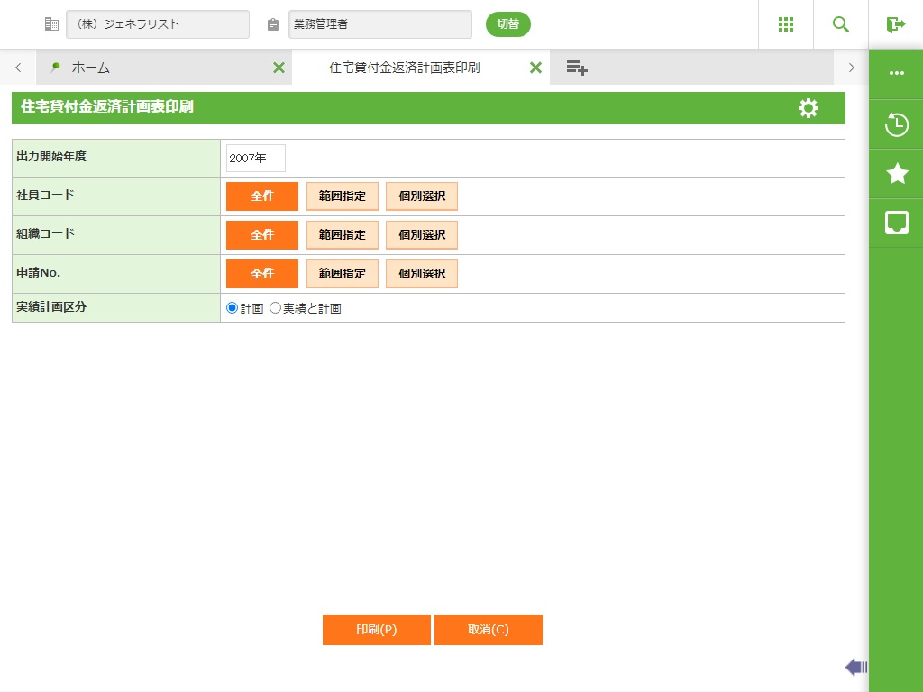 住宅貸付金返済計画表の帳票を出力することができます。