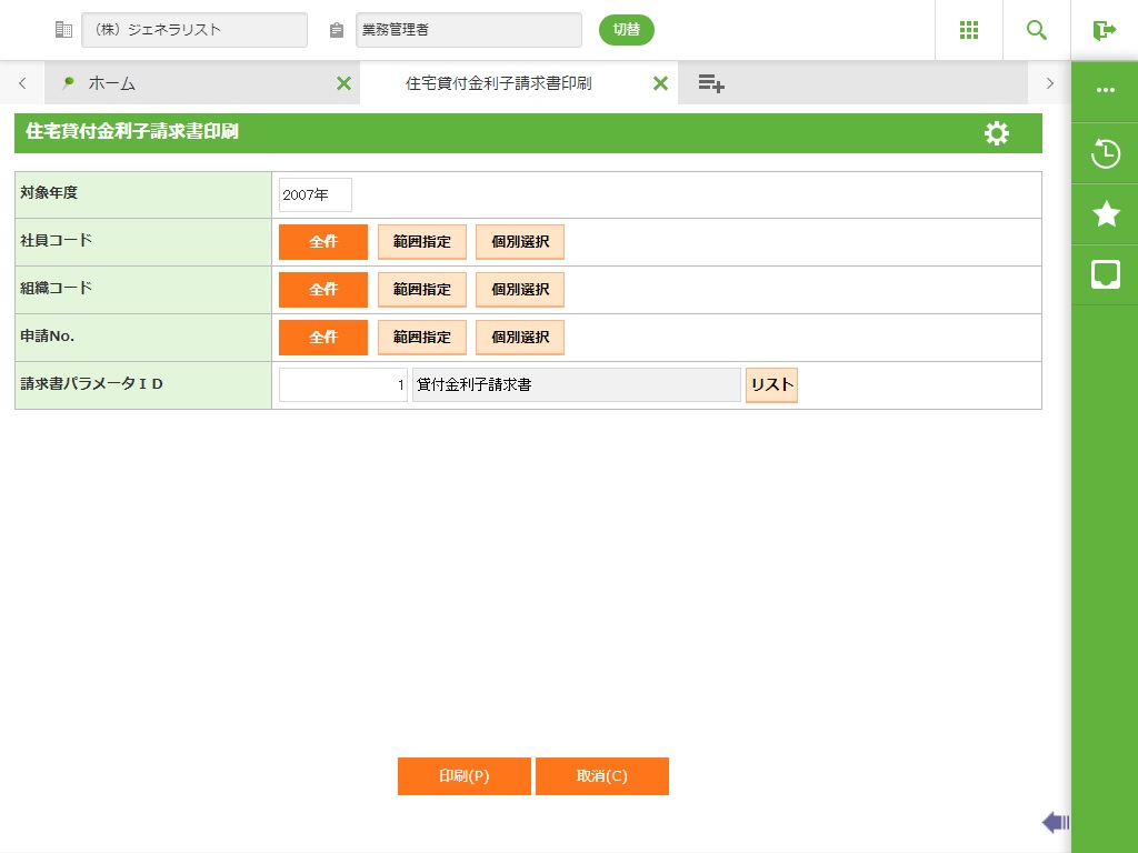 住宅貸付金利子請求書の帳票を出力することができます。