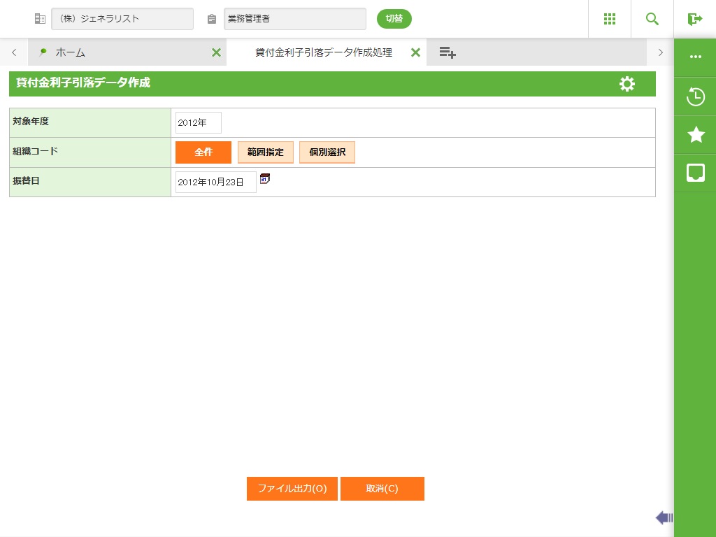 年末利子引落月に、元金均等法返済の利子額をメディア(MT・FD)へ出力します。