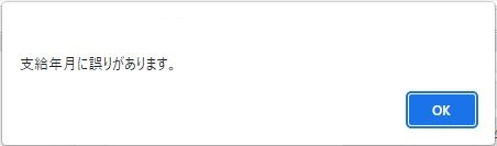 ・ 給与システム管理マスタの賞与ロック区分が「1:使用する」の場合、指定した賞与の支給区分に対し処理年月と同一年度の別の年月で支給日登録が行われていた場合、処理続行不可のチェックを行いエラーメッセージを表示します。(3.3.2 支給日登録を参照)