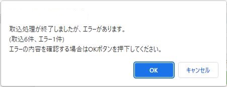 ・ 取込処理終了後に取り込んだ件数を表示します。