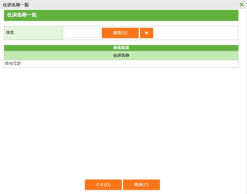 仕訳名称一覧画面へ戻ります。 |