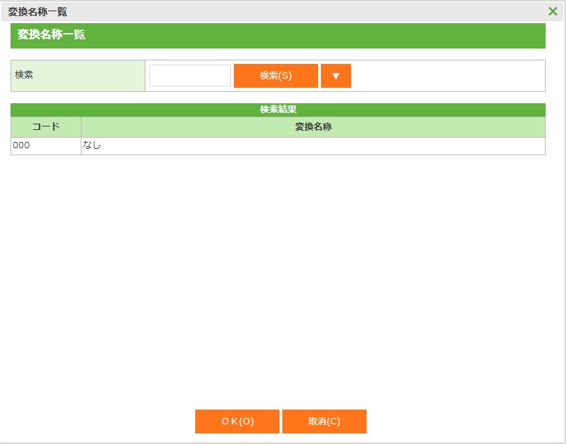 ・ 変換名称を検索し、一覧が表示されます。検索・表示させることもできます。